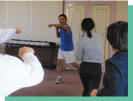 1.ウォームアップストレッチ 2.ラテンエアロ基本ステップ 3.ラテンシェイプダンスで楽しく踊りましょう! 4.サルサムーブメント |